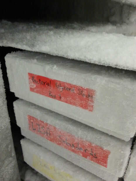 Así que utilice la misma técnica que antes de añadir 4 mL de nuestro antibióticos caldo LB a 5 mL tubo Falcon, todo lo cerca de la llama manteniendo. Entonces tenemos que añadir nuestras bacterias. Almacenamos el glicerol de las bacterias en un congelador de-80 C y esto da la solución una consistencia de gel. Por lo tanto, podemos pegar justo en la punta de una pipeta en nuestra colonia de la madre y luego introducirlo en el caldo. Esta no transferir bacterias mucho, pero lo suficiente como para formar una colonia durante la noche.
