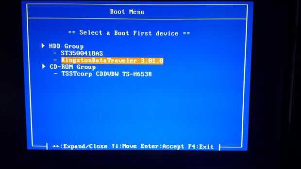 5. Uno aparece el menú de arranque, deje de pulsar la tecla de menú de arranque
