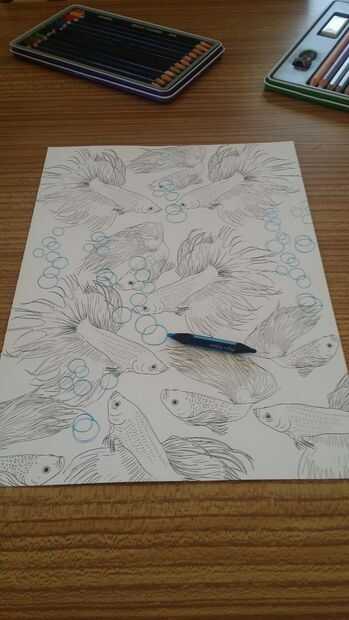 aquí es una guía paso a paso para conseguir peces coloridos!Paso 1: equipo de Equipment:Lápiz de coloresSacapuntasTrazadores de líneas finasMarcadores de gran arte terapiaCepillo cepillo doble puntasFondo de agua con pecesHoja de Consejo técnico.Paso