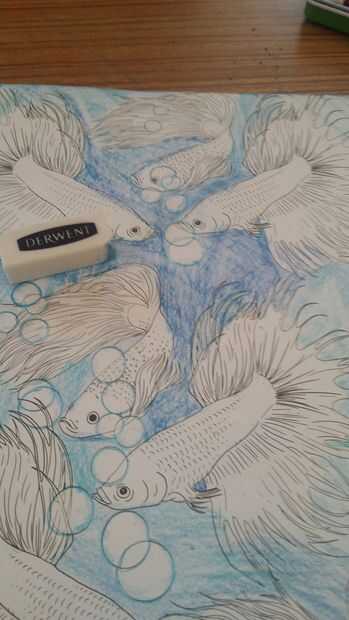 aquí es una guía paso a paso para conseguir peces coloridos!Paso 1: equipo de Equipment:Lápiz de coloresSacapuntasTrazadores de líneas finasMarcadores de gran arte terapiaCepillo cepillo doble puntasFondo de agua con pecesHoja de Consejo técnico.Paso