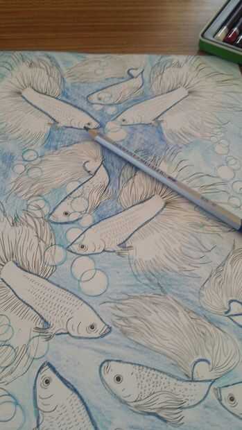 aquí es una guía paso a paso para conseguir peces coloridos!Paso 1: equipo de Equipment:Lápiz de coloresSacapuntasTrazadores de líneas finasMarcadores de gran arte terapiaCepillo cepillo doble puntasFondo de agua con pecesHoja de Consejo técnico.Paso