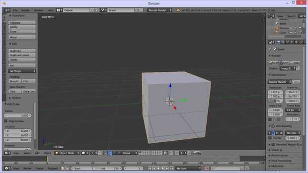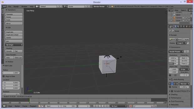 Hola gente. Voy a mostrarte cómo hacer un clip de dinero en la licuadora. Si eres nuevo en la licuadora debe leer estePaso 1: Ok vamos a empezar. Cuando abres blender empiezas con un cubo. Vamos a tomar este cubo y cambiar su tamaño. Para cambiar el