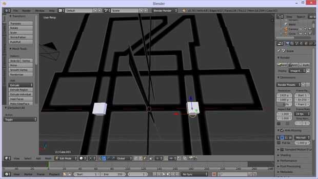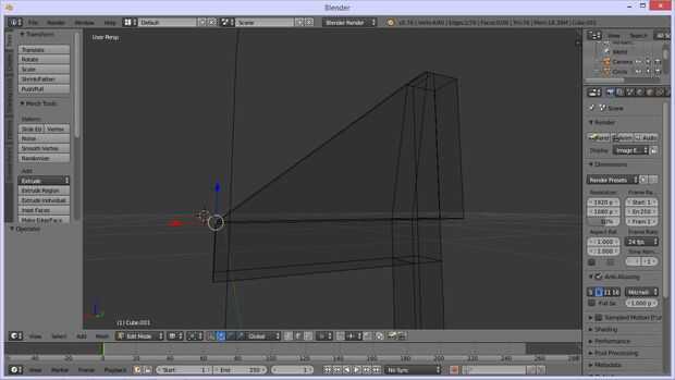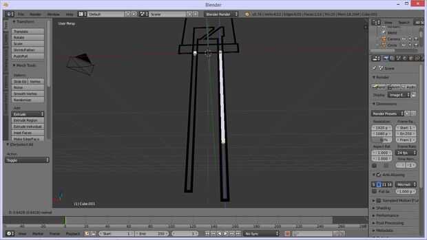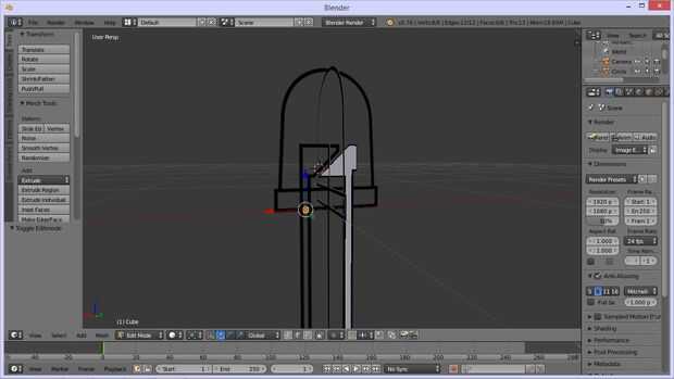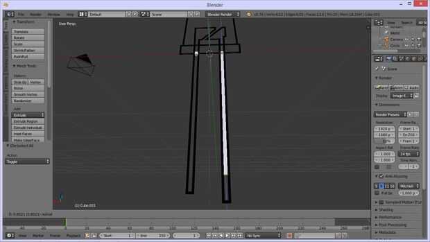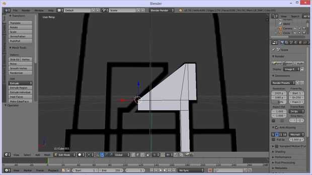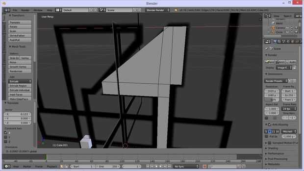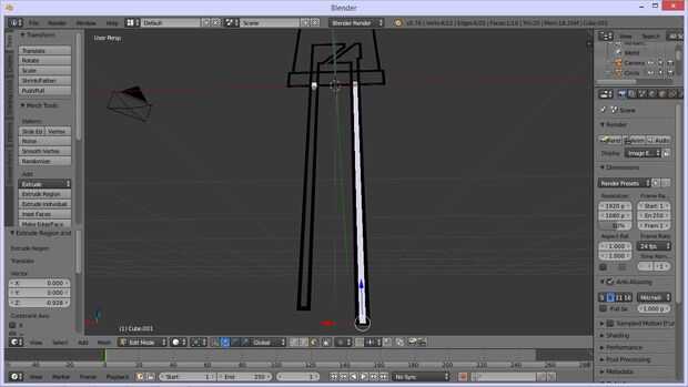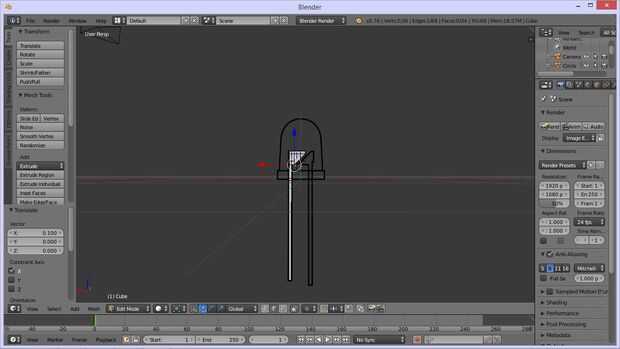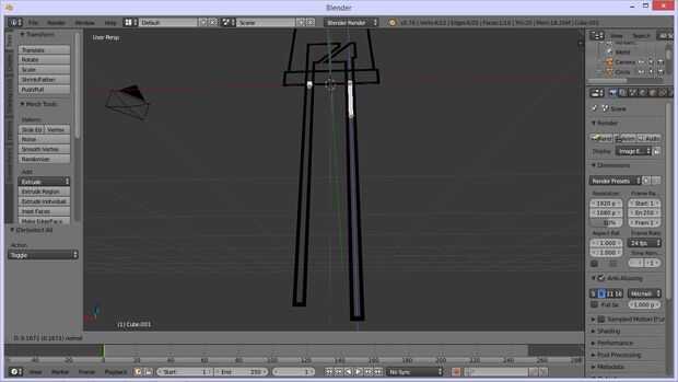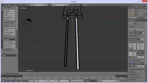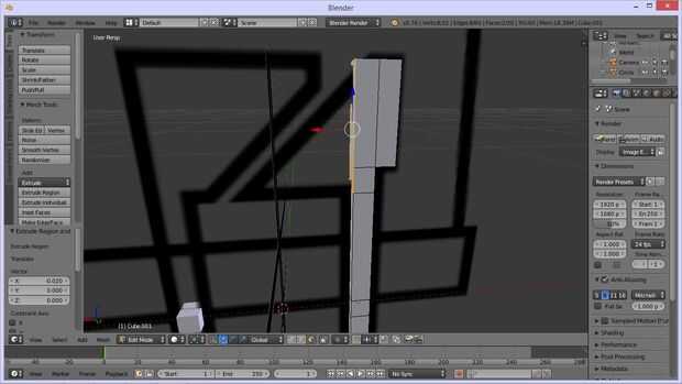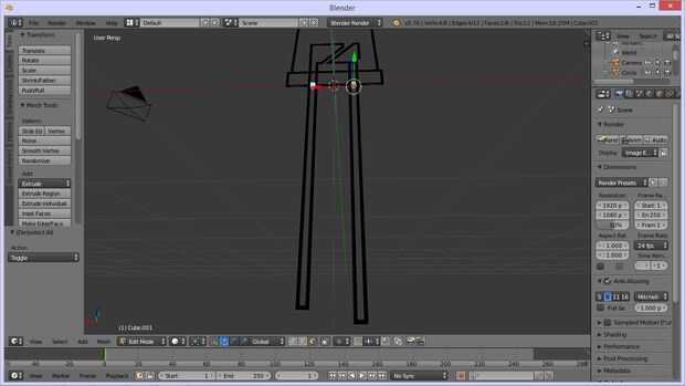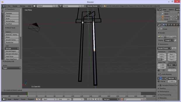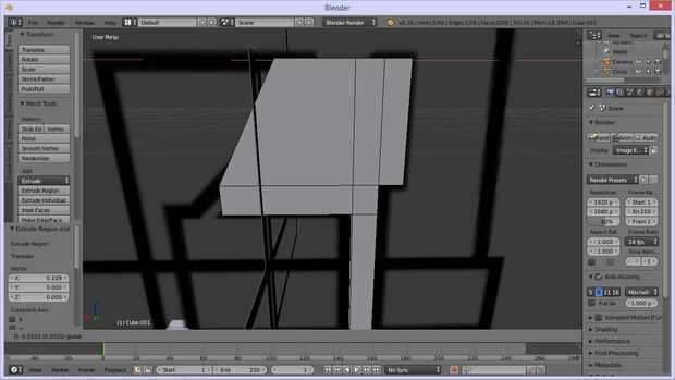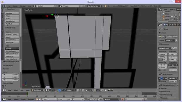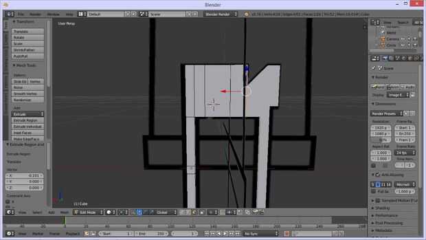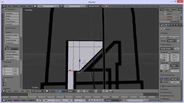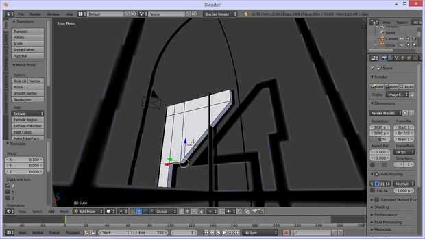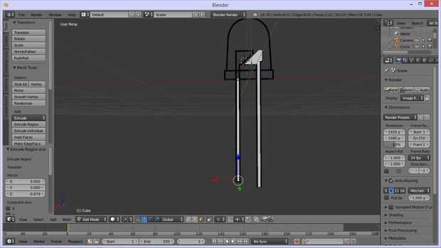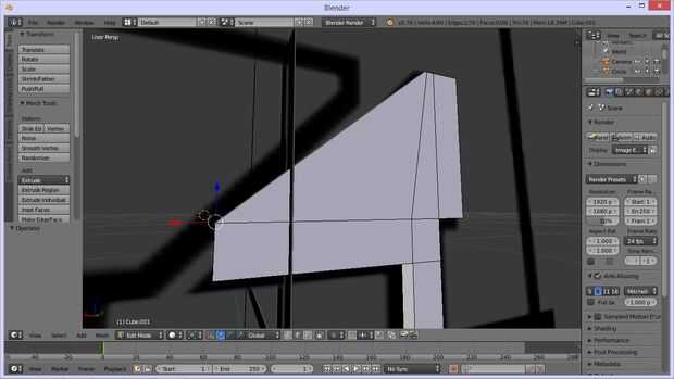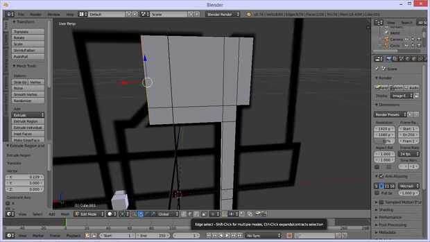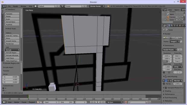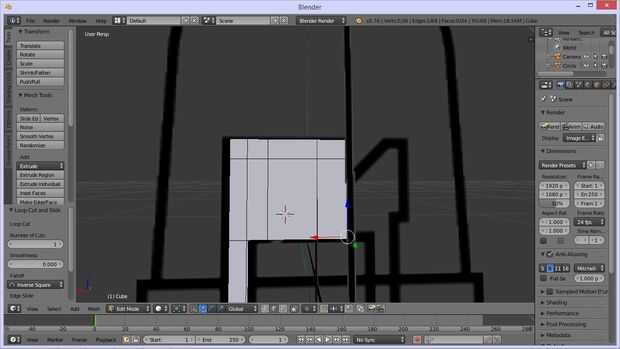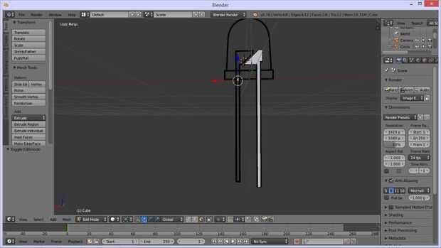Consejo útil: Si usted está teniendo problemas de extrusión a las localizaciones perfectas, puede sacar pasado, entonces {ctrl} {r} clic izquierdo para seleccionar la orientación y el clic izquierdo nuevamente para seleccionar la ubicación exacta, para hacer cortes a través de piezas sólidas que podrás seguir sacar o mover alrededor.