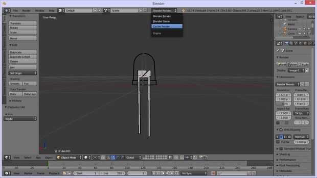 Ahora que todo está hecho, es hora de agregar materiales y colores. Hay diferentes formas de color en la licuadora, que vamos a utilizar los ciclos de procesamiento. En el centro de la ventana, debe haber un menú desplegable, asegúrese dice "Representar ciclos"