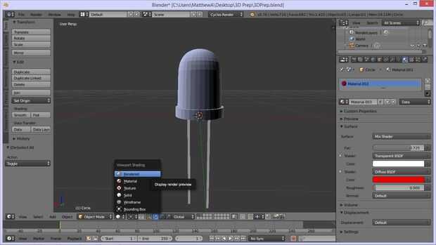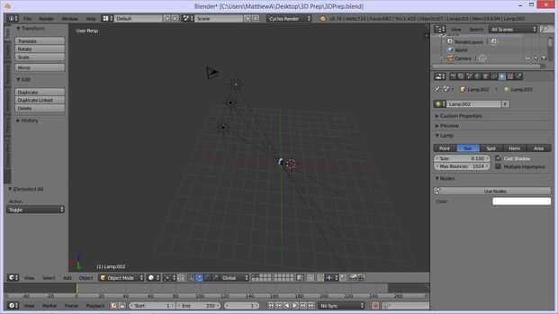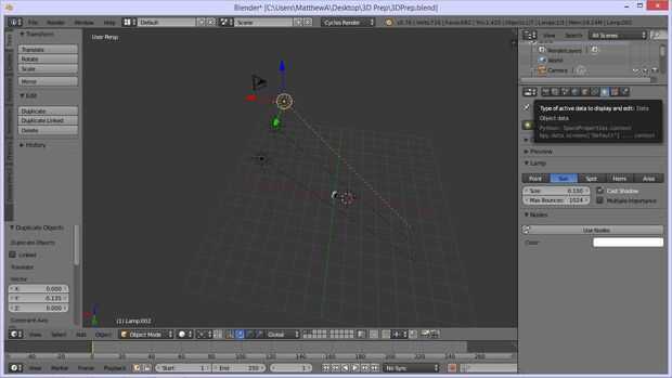 Puede cambiar los estilos de luz en el lado izquierdo. Hacía sol y {shift} {d}, movido {g}, y {r} les girada a todos los puntos en mi LED.