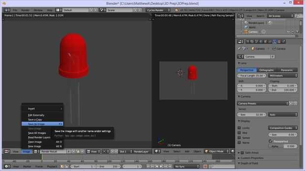 A partir de ahí, pasé la cámara a mi LED. Para la cámara, puede agarrar la parte inferior izquierda de la ventana y arrastre hacer una segunda pantalla. En la pantalla, se puede {t}, {n} lejos el menú 's si los tiene. Entonces usted puede {0} (teclado numérico) para ver una de las vistas en el modo cámara. En el otro modo, puede mover que la cámara alrededor y {r} gírelo hasta que el tiro se ve exactamente como le gusta. {f12} pueblecito una imagen y luego guardarla como un PNG.