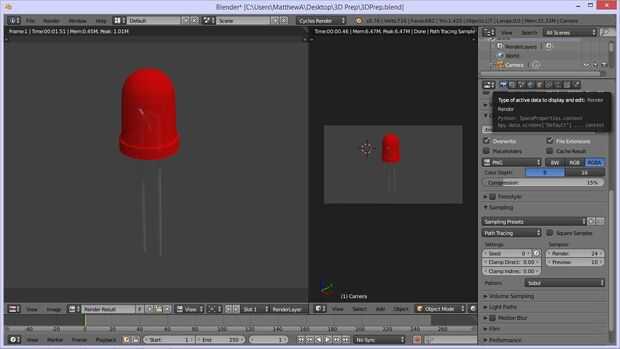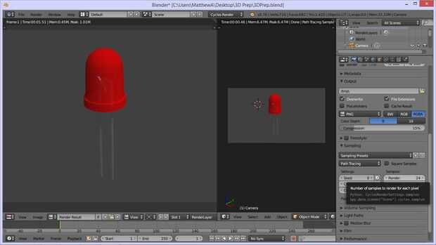 En el menú de Render en el menú de lateral de la mano derecha y el menú desplegable de muestra, puede establecer las muestras en su render y escuchar. El escuchar debe ser menor y luego su procesamiento (recomiendo 12 para escuchar y 24 para el render, aunque los resultados pueden variar). Cuanto mayor sea el valor, más tiempo tomará para salvar su imagen, y el más agradable debería ser.
