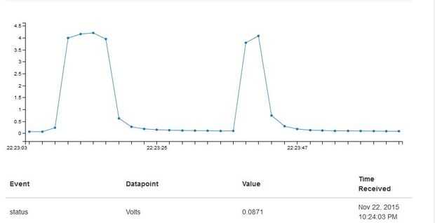 Una vez cargado en su tarjeta de Edison, este leerá un valor analógico en A0 de la placa breakout de Edison de Intel.