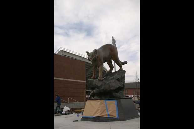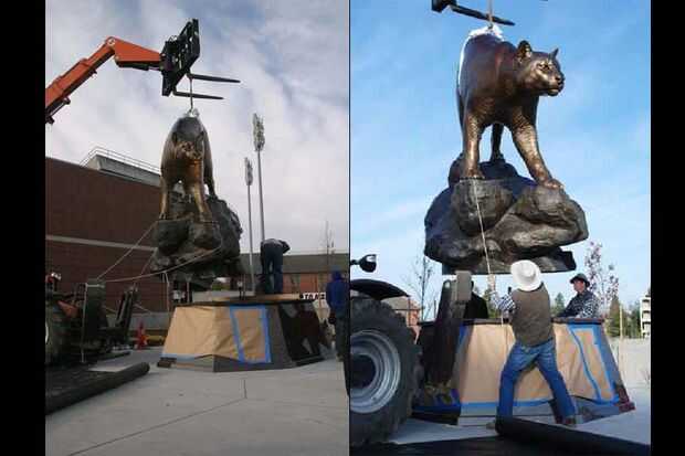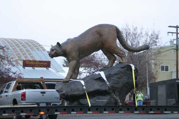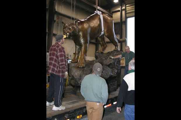 Ahora el monumento está listo para la entrega e instalación. El puma fue recogido por su centro de masa usando un torno y colocado en el remolque. Una vez en el sitio del monumento fue elegido por una elevadora de extensión de 8000 lb. La escultura tuvo que ser cuidadosamente bajado del pedestal, la manga sobre la barra y bajar uniformemente para evitar fisurar el granito.