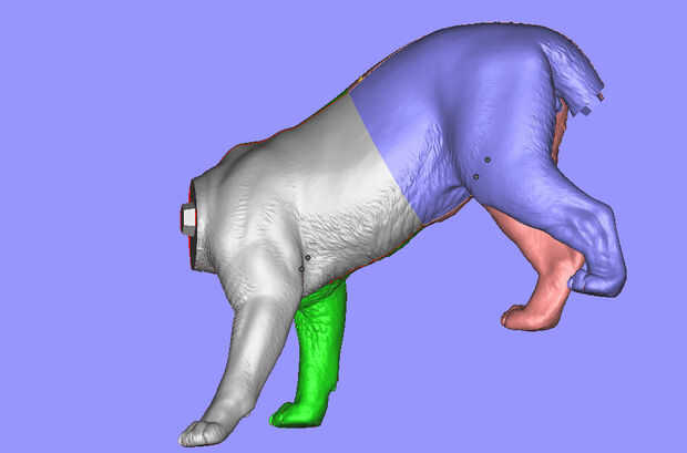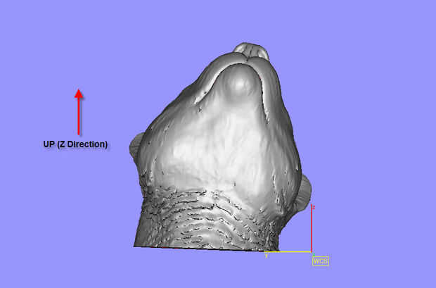 La escultura tuvo que ser cortado digital hasta el mejor plan para rapidprototyping. Es un problema de optimización como la impresora crea líneas de fabricación que reducen el detalle. Por ejemplo, si se imprime un cono largo desea imprimir con la punta para maximizar la resolución pero esto construiría aumento de tiempo y por lo tanto costo.