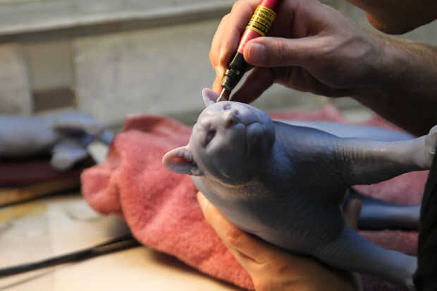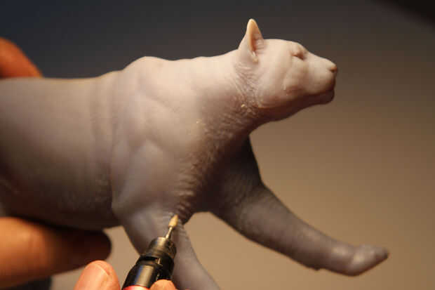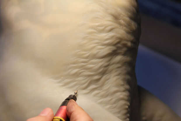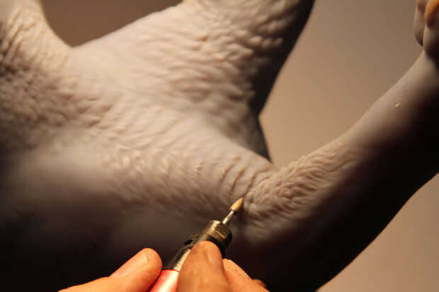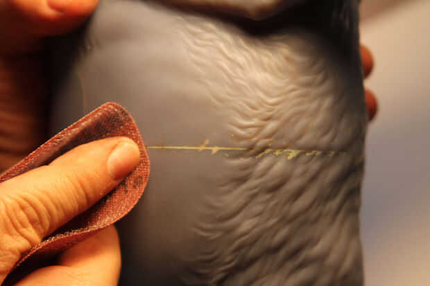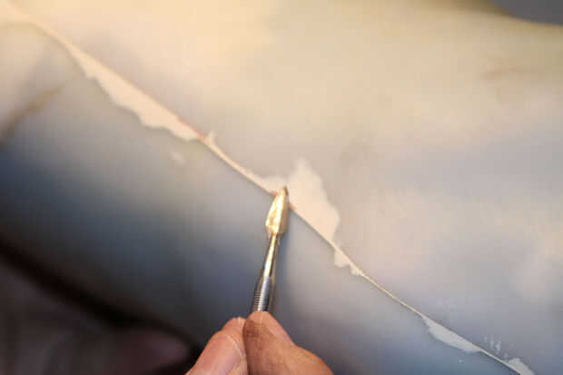 Luego las costuras-fueron fileteadas con mueren las amoladoras usando brocas de diamante y rubí. Luego las costuras se lija con papel de lija más fino progresivamente. Las costuras son a veces difíciles de fusionar desde el relleno y la resina de prototipos son ligeramente diferentes durezas.