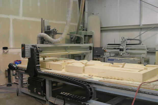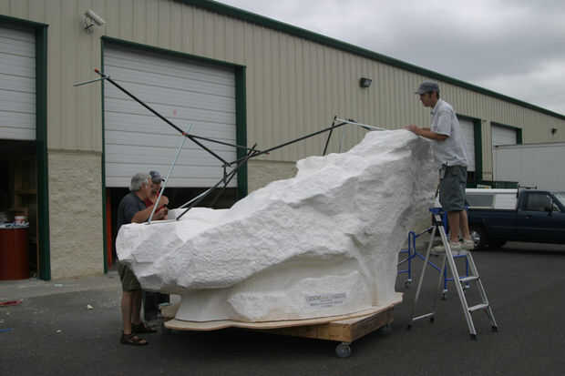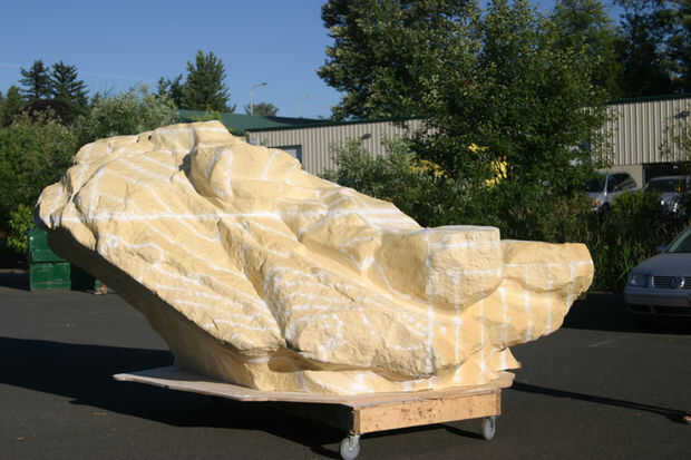 La roca original creada en Zbrush era mucho demasiado simplista e inexacta, después mirando miles de rocas de basalto finalmente encontramos una gran. Algunos personalización hacer ruptura y agregando rocas y haciendo algunos trabajos de arcilla. Esta roca fue luego analizada y CNC de espuma densa y muy cara. Utilizamos pared compuesto para rellenar las juntas que ha demostrado para ser un poco demasiado fácilmente la arena y de la herramienta. Una vez todas las costuras y el sombrear se fileteado y lija, todo el rock fue pintado en una capa de uretano.