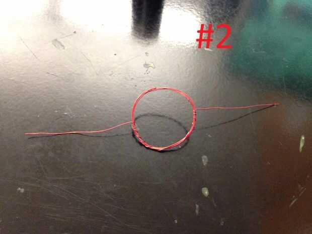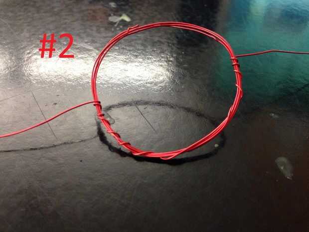 2. enrollar los extremos de cable sueltos alrededor de la bobina, para mantener segura la forma de bobina circular como se muestra en cada cuadro #2.