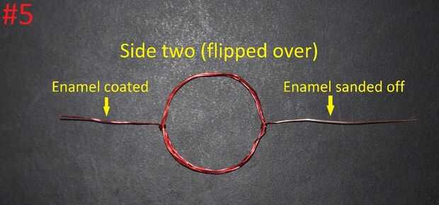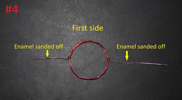 4. Lije el esmalte totalmente apagado uno de los extremos de perder de la bobina como en imágenes #4 y #5.
