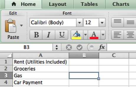 - Al entrar en las categorías, el texto aparecerá en la célula sí mismo, sino también en la cinta en la parte superior de la página. Después de que oficialmente han introducido la categoría de oprimir la tecla RETURN/ENTER, estas categorías pueden ser editadas o modificadas haciendo clic en la celda y editar la cinta encima de la hoja de cálculo.