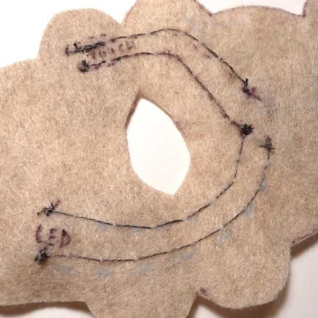 - Coser las líneas de tierra y D3 a la zona de la pata.