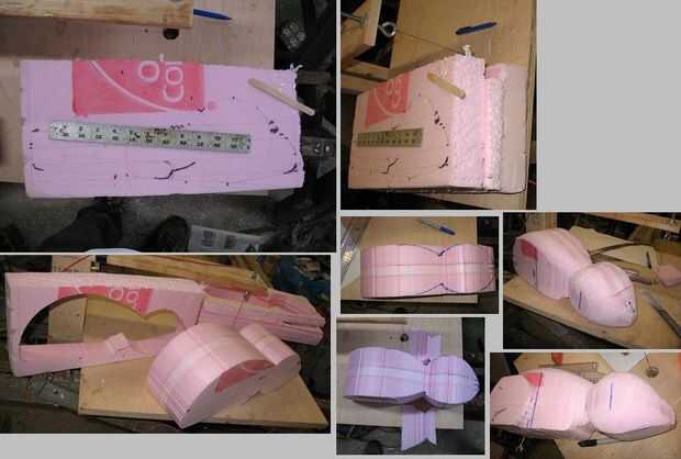 El queso fue hecho por la fibra de vidrio alrededor de núcleos de espuma de embalaje. El frente de la cuña era tallada según sea necesario, un agujero con forma hexagonal se cortó en la parte trasera y el eje se deslizó a través del orificio. La nariz del queso fue luego glassed durante y varios tamaño agujeros moldeados en el queso con gota de resina golpes.