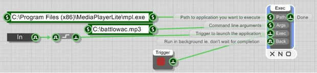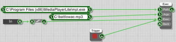 Todo, es un texto a mp3 en línea sitio para crear las alertas de voz. A continuación utilicé un programa separado para jugar el mp3. Enviar un falso estado de verdadera lógica vía el Bool cierto disparador y Exec el módulo se tire el mp3 y jugar con el programa especificado. Muy fácil!