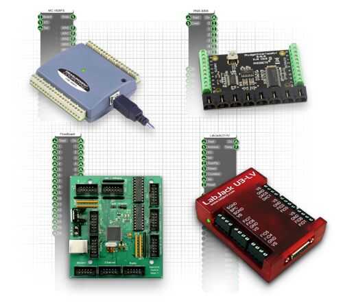 Esta suite de programación gráfica se hace por dsprobotics y soporta el labjack u3 además de muchos otros dispositivos de automatización a través de múltiples fabricantes.