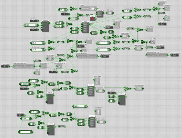 El labjack u3 puede aceptar un máximo de 20vdc en 4 de sus entradas analógicas dedicadas. Mi banco de baterías de Lifepo4 va hasta 29.1vdc usé un potenciómetro de 10 k-ohm para dividir la tensión máxima 14vdc.