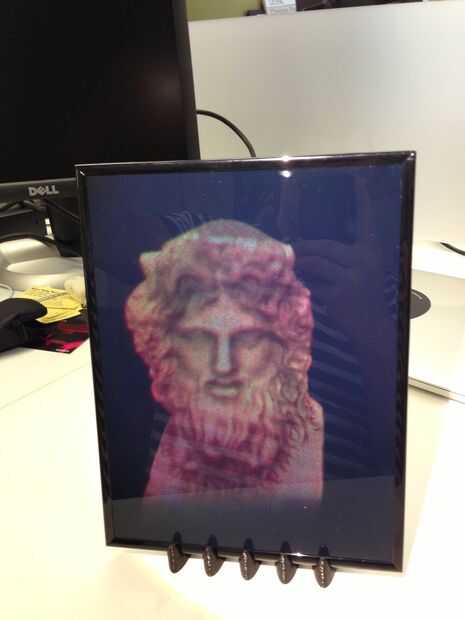 mi equipo de trabajo recibió recientemente una cosa genial: un holograma hecho de un modelo 3D. Es realmente dramático, pero sentí no se mostró todo su potencial: Necesitábamos una manera de mostrarlo.