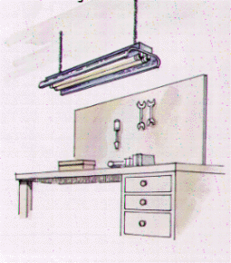 Iluminación fluorescente proporciona más luz que la iluminación incandescente y es menos costosa operar. Algún accesorio viene con cables para enchufar en un tomacorriente, otros accesorios necesitan estar permanentemente conectados.