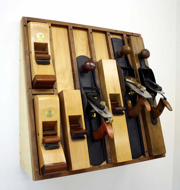 La primera foto muestra una mitad de un par que empareja de pared montado en armarios para planos de mano. Estas no son difíciles de construir y con inglete marco y panel de puertas con un panel de madera prensada. El gabinete sí mismo tiene la barbilla articulaciones reforzadas con galletas. Los estantes son dadoed en los lados del gabinete. Las particiones son personalizadas para los planos de mano individual.