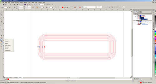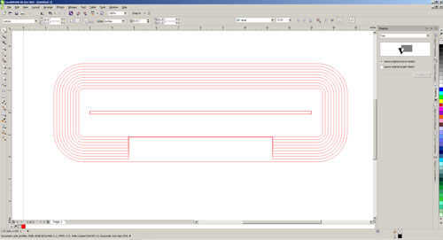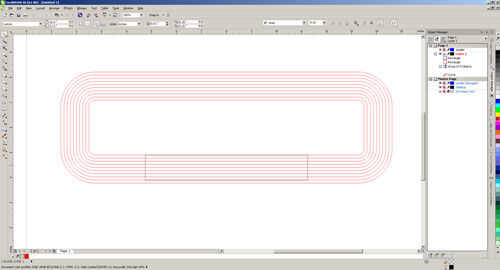 En una nueva capa, creado un rectángulo del tamaño de la capa superior de la base y redondeado de las esquinas. Luego usé la herramienta de contorno exterior con una medición incremental del 1/8" y 9 pasos contornos 1/8" más grande que la inferior, de había hecho. Una vez que esta se completó, rompí el grupo contorno aparte, que todos los objetos desagrupar, pero dejaron apilados.