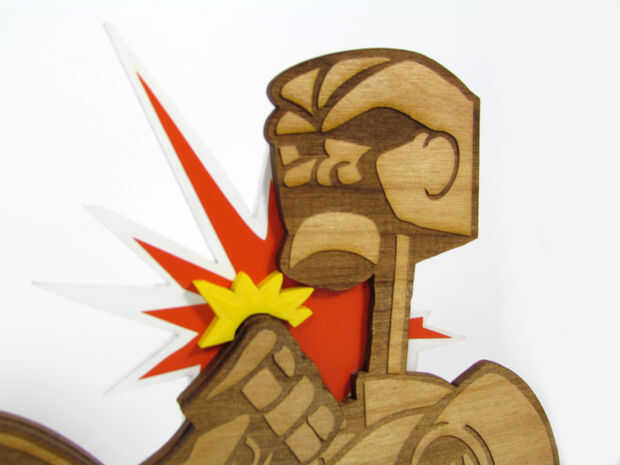 Comenzar pegando el brazo a la parte superior del cuerpo principal. De la abrazadera hasta que cuaje. Luego pegar la parte de acrílico más grande en la parte posterior del cuerpo principal. De la abrazadera hasta que se seque. Ahora pegue la pieza de acrílico más pequeño en la parte superior de la pieza de acrílico más grande, alineando con el cuerpo principal.