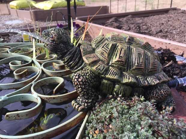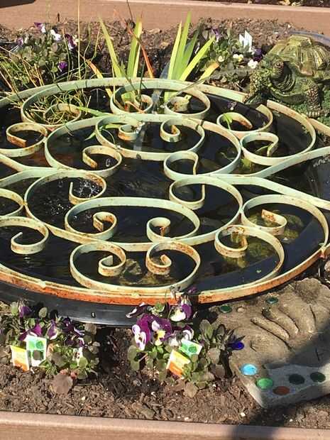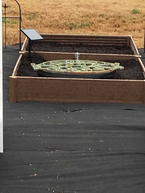 Finalmente recibimos el último cuadro y lo colocó central trasera como se muestra. Comprar una ronda de 24 pulgadas, bañera profunda de 8 pulgadas en la tienda de mejoras para el hogar local por aproximadamente $11 y había colocado en la caja de centro delantero. Agregamos agua y una bomba fuente solar con una almohadilla filtrante adjunto y batería de backup. Al tubo de la fuente y añadir un lanzador de tortugas como la atomización fina de la fuente había drenada la función si hay viento. Hemos añadido varias plantas de agua, renacuajos de rana toro 10 y 3 carpas rojo rubí para mantener los mosquitos a raya. Las ranas y los peces han sido floreciente durante un mes con solo el filtro solar. La cama elevada se llenó de un suelo de jardín alrededor de los bordes de la característica de agua. Plantaciones fueron agregados para el color. Utiliza pensamientos y tomillo lanoso y plantó la semilla de Shasta daisy en la parte posterior de la cama de agua característica finalmente ocultar el tubo. Tenemos un problema con cuervos y quería mantener a nuestros peces y renacuajos seguros así que uno de nuestros muchos artículos jardín recogidos ponen sobre el estanque. Tuvimos un pedazo pintado de hierro de una antigua puerta de la finca que encajan perfectamente. Compensación estaría muy bien también.