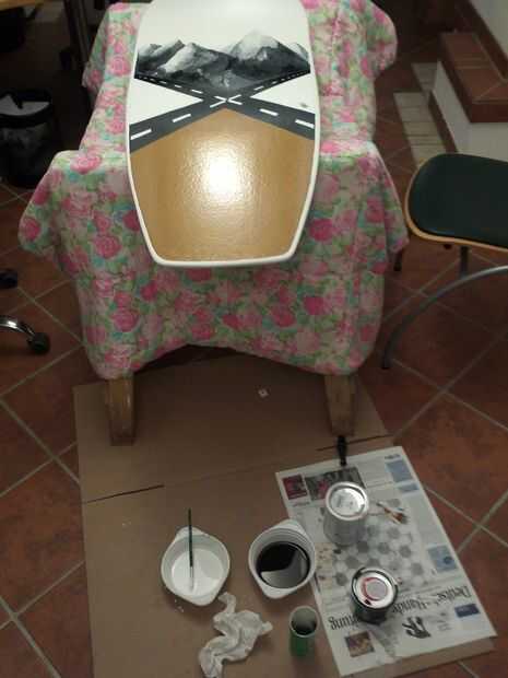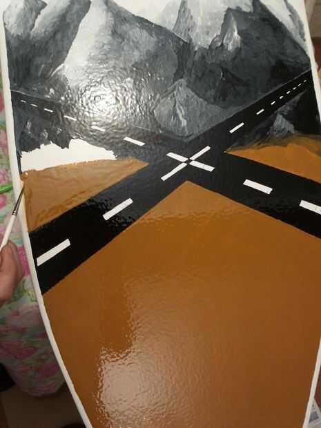 Cuando se hayan secado las dos primeras capas de pintura para barcos, puedes empezar a decorar tu skate wake. Para este paso, no es importante utilizar agua pintura, como la pintura va a ser incluido en la pintura para barcos. Puede dibujar cualquier diseño sobre tu skate wake. En las fotos, puede ver un ejemplo de lo que yo he dibujado en mi skate wake. Es muy difícil de usar muchos colores diferentes, por lo que es recomendable utilizar colores como pocos como sea posible.