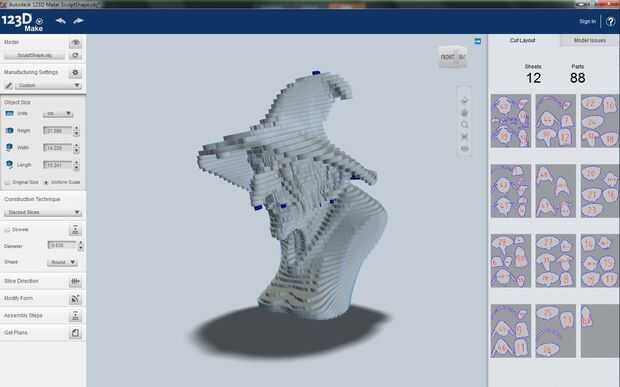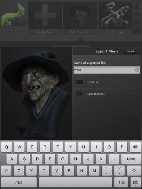 Si usted quiere exportar su modelo a otro programa como Make 123D puede hacerlo fácilmente en las opciones del menú. El archivo será un archivo obj que puedes encontrar en iTunes bajo el 123D App de criatura.