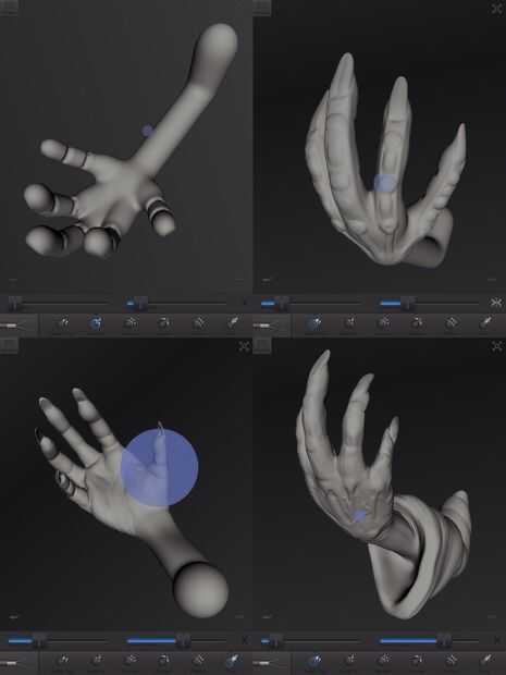 Utilice las herramientas Sculpt hacia fuera y Grab. Definen los nudillos y uñas. (mantener simetría en hasta que vuelva a coloca los dedos)