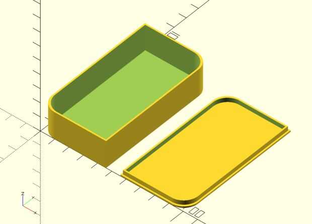 Para cerrar, ahora te modelo una tapa. Técnicamente, es un modelo en la forma de la caja previamente creada con una pared adicional en el centro. La pared de la caja exterior es de 1mm fuerte, tenemos que reducir el ancho del interior caja por 2 mm. También traducimos esa forma en el lado derecho de la caja.