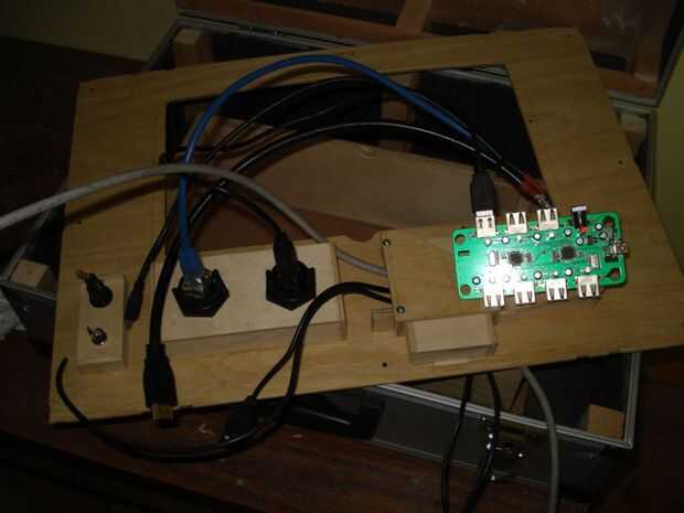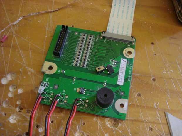 Los botones en el tablero del botón se quitan y cables extensiones equipadas. Se modifica el panel de LCD de madera contrachapada y tres botones push-to-make caliente-pegan junto con un indicador LED. Muescas en el borde inferior del panel de madera contrachapada de hacen espacio para los cables pasar entre las mayúsculas y minúsculas.