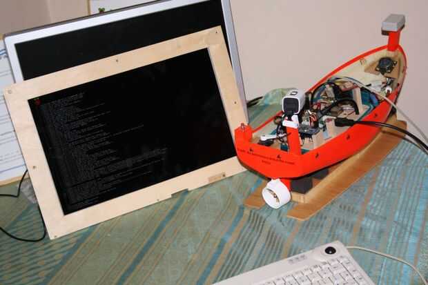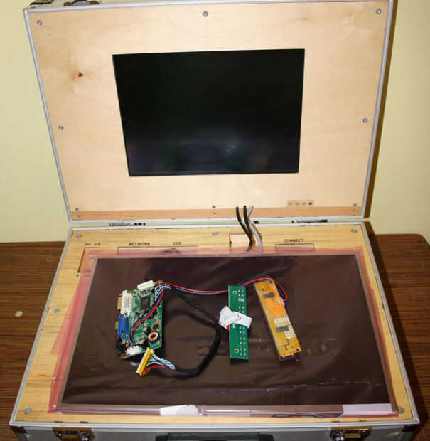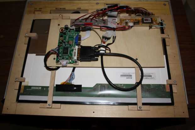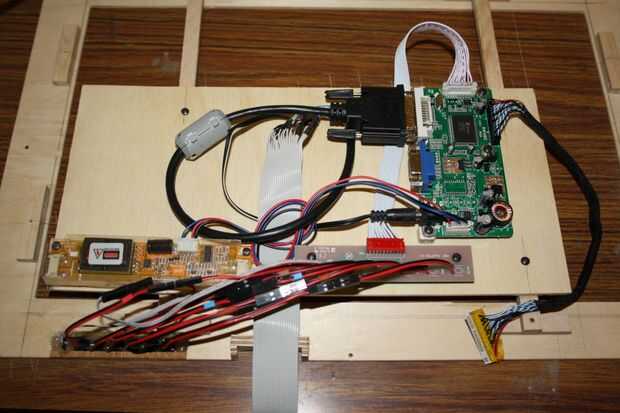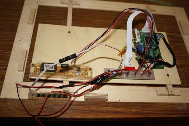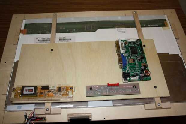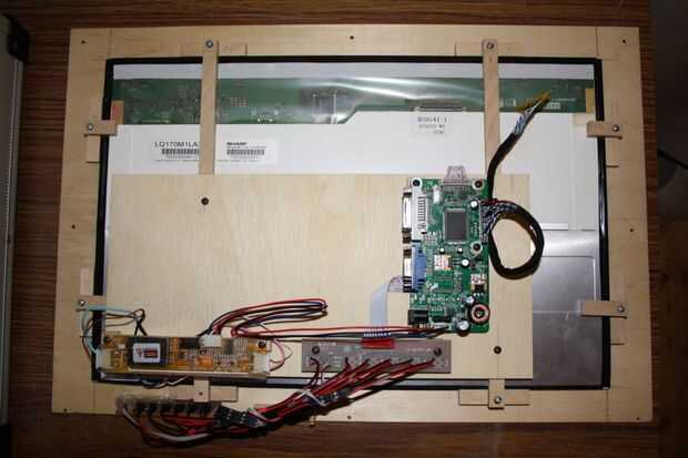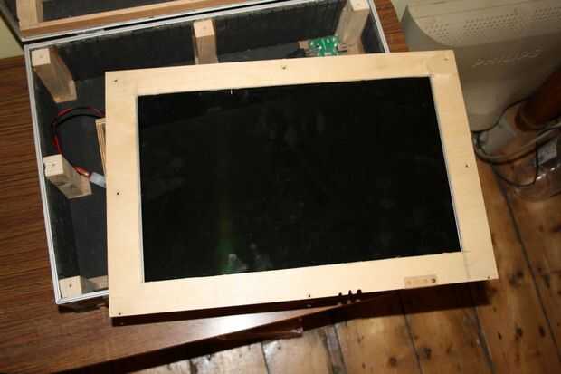 Se ha aumentado el área visible en el panel de madera contrachapada. Los soportes más grandes y dos largueros transversales fijan el panel más grande in situ. Entre los largueros de un panel adicional a la que se montan el PCB.