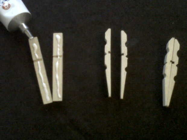Luego, pegar cada pieza de pinzas espalda con espalda para hacer una especie de chap.