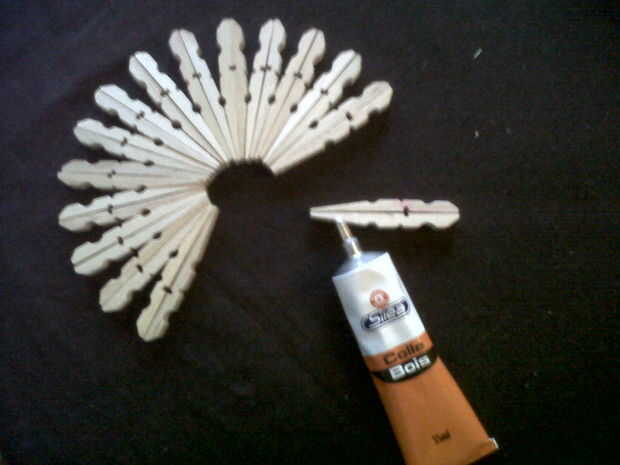 Pegan los pares de pinzas junto a otros para hacer un círculo. (Puede utilizar el pincel para extender el pegamento)
