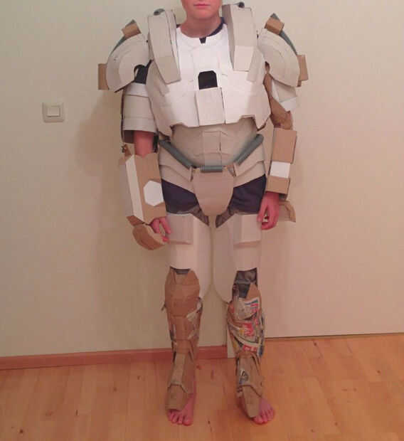 Como se ve en las fotos, el traje entero no estaba terminado a la vez, esto fue porque el tiempo forzado algunas de las piezas a ser papel mached primero. Sin embargo, he podido todavía papel maché todas las piezas y cubra con cartulina