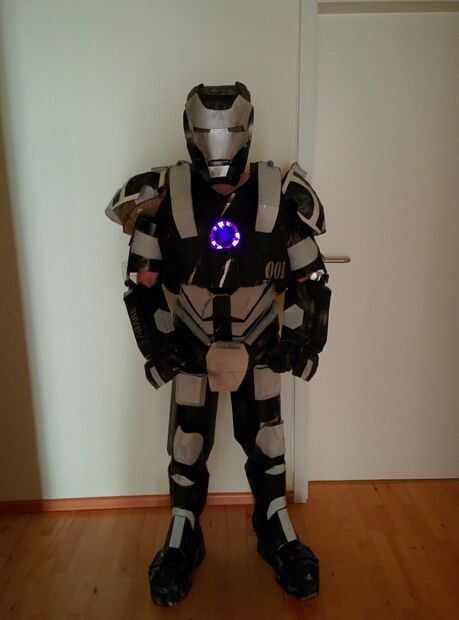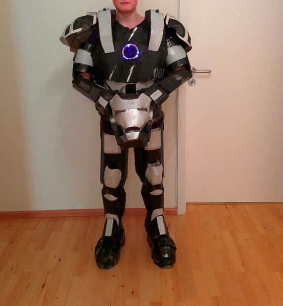 Después de que el traje entero se ha pintado, quería que se vea batalla desgastado. Esto es porque no quería que el traje para ver banda nueva, que mostraría las imperfecciones. Con el fin de que sea usado, tenía el traje del "tiempo". Esto se hizo tomando plata pintura de aerosol metálica y pulverizando sobre una bola de periódico de tejido. Esto fue luego pasa rápidamente a través de la demanda que crea un efecto de la herida. Otro método que utiliza era rasgar la cinta y colocarla sobre el juego de una manera que rascar. Esto fue luego pintado a spray para crear el efecto.