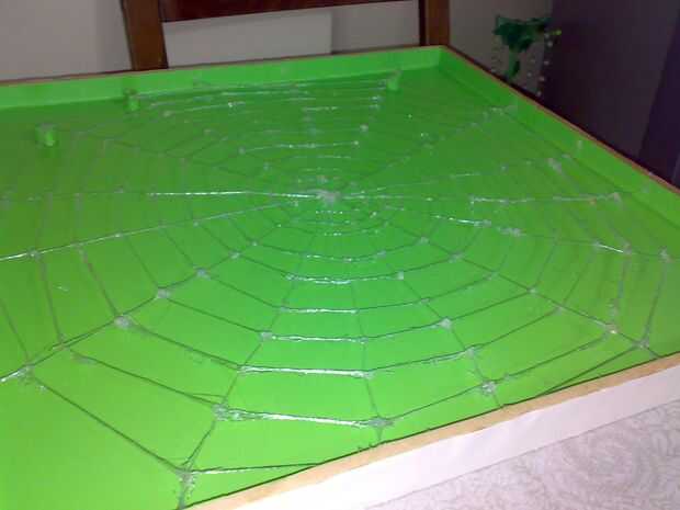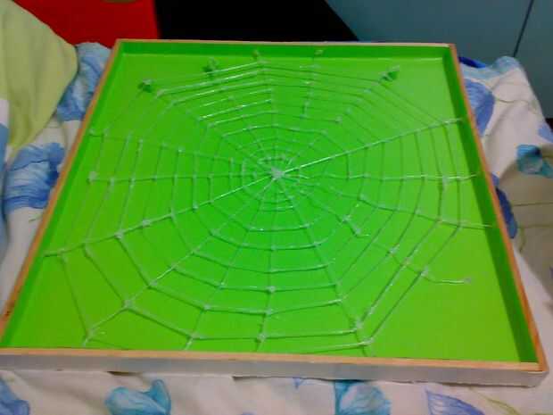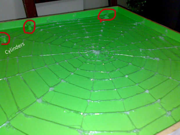 También agregar un cilindro debajo del centro de la web. Con esto, su tela de araña artificial no tocará la superficie de la caja.