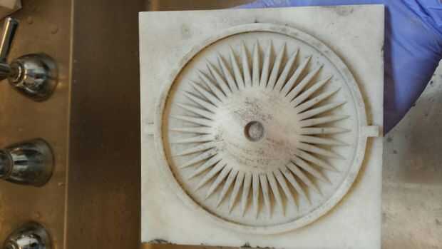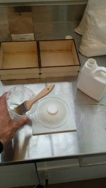 Hay muchas teorías y productos para ayudar a flujo en todos los rincones y grietas de su counterpositive de yeso. En el transcurso de mi proceso de prueba y error he usado tres: un jabón del molde base de aceite de linaza, talco y finalmente una solución de 50-50 de Windex y agua, que trabajó el mejor.
