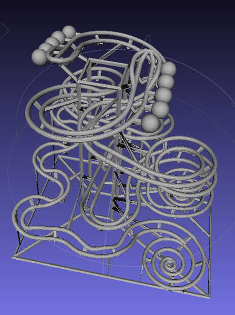 Me di cuenta rápidamente que cuando hice un modelo 3D virtual, tendría que ser capaz de construir y modificar fácilmente. Bueno, modificando una escultura rodante de bola tiene consecuencias tal que cualquier cambio realizado más arriba afectarán a una porción de la pista más abajo. Siendo una clase de programador de computadoras de chico, pensé que sería interesante intentar hacer un modelo virtual de programmactically que me daría la libertad de hacer algo que podría ser muy exacta e indulgente en cuanto a modificar el modelo.