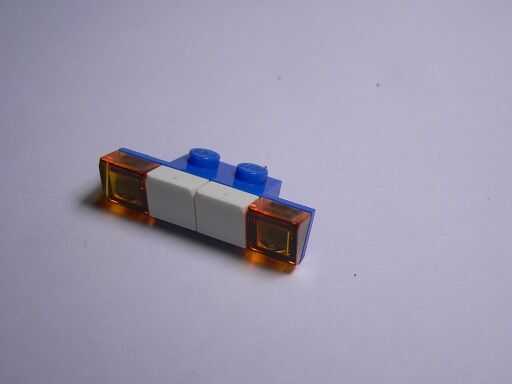 Coloque los azulejos de la azotea a lo largo de la placa angulada (el lado de 1 X 4). PROBAR Y HACER LAS TEJAS COLOREADAS MÁS LIGERAS VAN AL EXTERIOR PARA QUE SE VEA COMO LUCES DE COLA. COLOQUE LA PLACA ANGULADA EN EL PEGARSE HACIA FUERA LA PARTE DE LOS TITULARES DE NEUMÁTICO (IMAGEN 2).