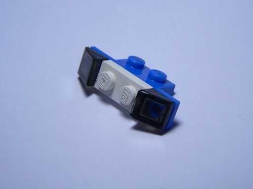 Lugar 2 de los azulejos de la azotea en los lados exteriores de la placa angulada. COLOQUE LA PIEZA PLANA 1 X 2 ENTRE LAS 2 TEJAS. AGREGUE UNO DE LA REJILLA RADIATER EN LA PLACA DE 1 X 2. COLOQUE LA PLACA ANGULADA EN PEGARSE HACIA FUERA LA PARTE DEL SOPORTE DEL NEUMÁTICO EN LA PARTE DELANTERA.