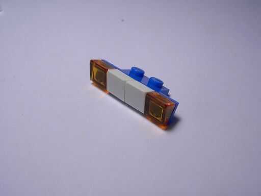 Coloque los azulejos de la azotea a lo largo de la placa angulada (el lado de 1 X 4). PROBAR Y HACER LAS TEJAS COLOREADAS MÁS LIGERAS VAN AL EXTERIOR PARA QUE SE VEA COMO LUCES DE COLA. COLOQUE LA PLACA ANGULADA EN PEGARSE HACIA FUERA LA PARTE DEL ELEMENTO DE RODAMIENTO EN LA PARTE POSTERIOR.