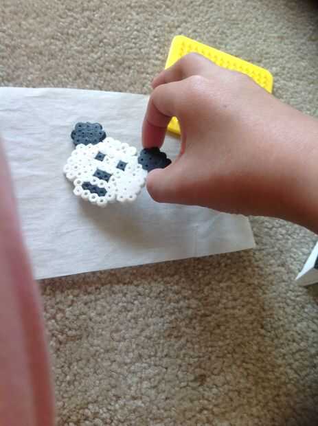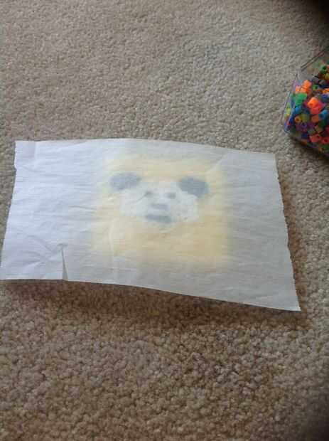 1. cuando el hecho de su creación, coloque su hierro papel o pergamino suavemente en su creación para que no caigan los granos. 2. Enchufe la plancha 3. Poner la plancha en lo alto y espere al calor para arriba. Cuando se calienta completamente, y luego vas a tomar tu hierro y puso en la creación con el papel de pergamino y frótela alrededor en círculos suavemente, asegúrese de que Planche cada donde. Vas a planchar durante aproximadamente 1 minuto. 4. cuando haces eso, vas a levantar la clavija del tablero con el papel de pergamino y voltear encima de lado abajo. Luego vas a sacar el tablero de clavija y levante la creación, es todavía va estar caliente, así que ten cuidado, luego voltear boca abajo y colocarlo en el pegboard otra vez, tomar su papel de pergamino y coloque en y vas a por otro minuto.