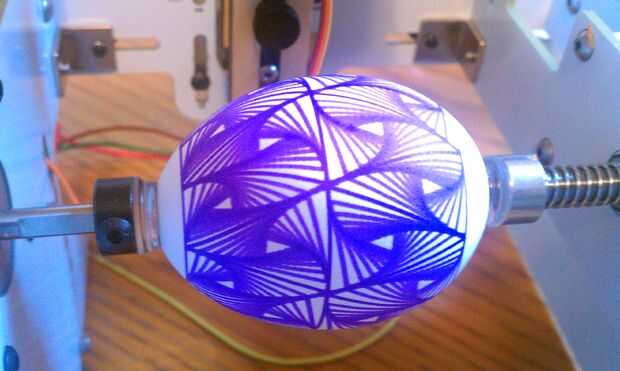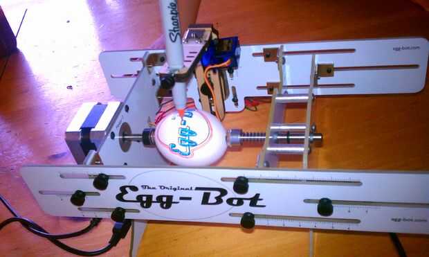 Si no está familiarizado con un huevo-bot, es esencialmente un pequeño torno del CNC. Pones dos embolos algo esférico objetos que son controlados por un paso a paso. También hay un brazo de la pluma que es controlado por un paso a paso que se mueve de lado a lado. Entre los dos motores PAP (y un servo para levantar y bajar el pin) el huevo-bot es capaz de tomar las instrucciones de un ordenador y utilizar para dibujar sobre un huevo. La plataforma de facto para crear dibujos y trazar en los huevos es Inkscape (y programa de código abierto similar a Illustrator).