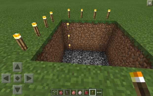 Hacer un 4 x 4 x 3 (longitud x anchura x profundidad) agujero en el suelo (antorchas también te dirá cómo, etc..).