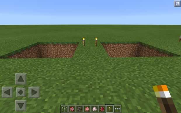 Cavar otro agujero que es el mismo tamaño y la profundidad como la primera. Observe que hay una distancia de dos bloques entre los agujeros.
